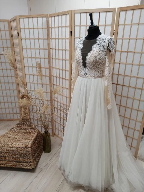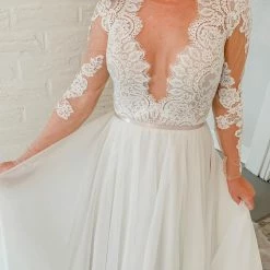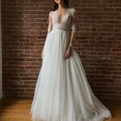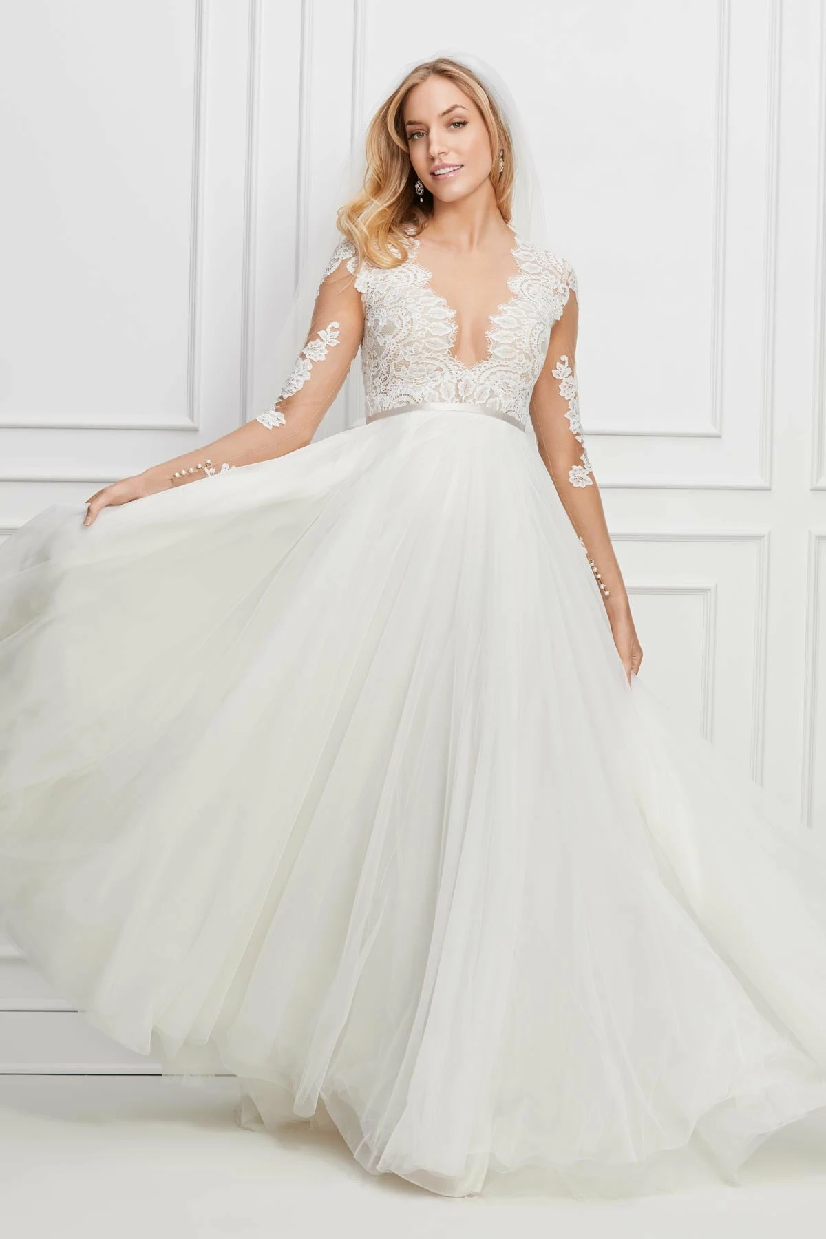 If romance is kind of your thing, meet our Camden. Wtoo crafted it with an illusion bodice accented with a hint of lace, plus a full net skirt that’ll make that first dance (even more) memorable.