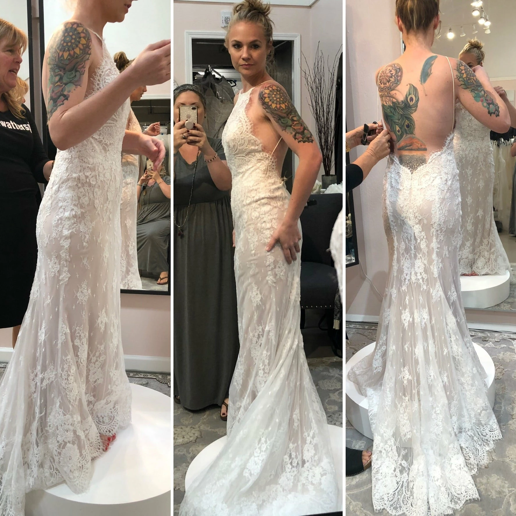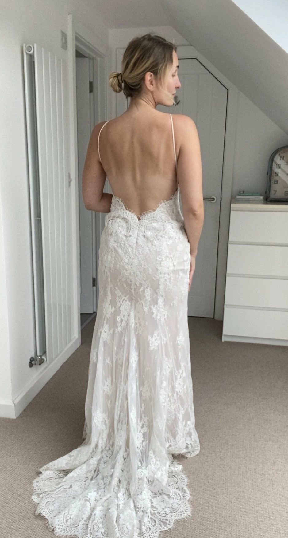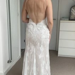 Size 12. Sample gown that has been tried on in store, but in like-new condition. No noticeable signs of wear. Retail price: $1,257.